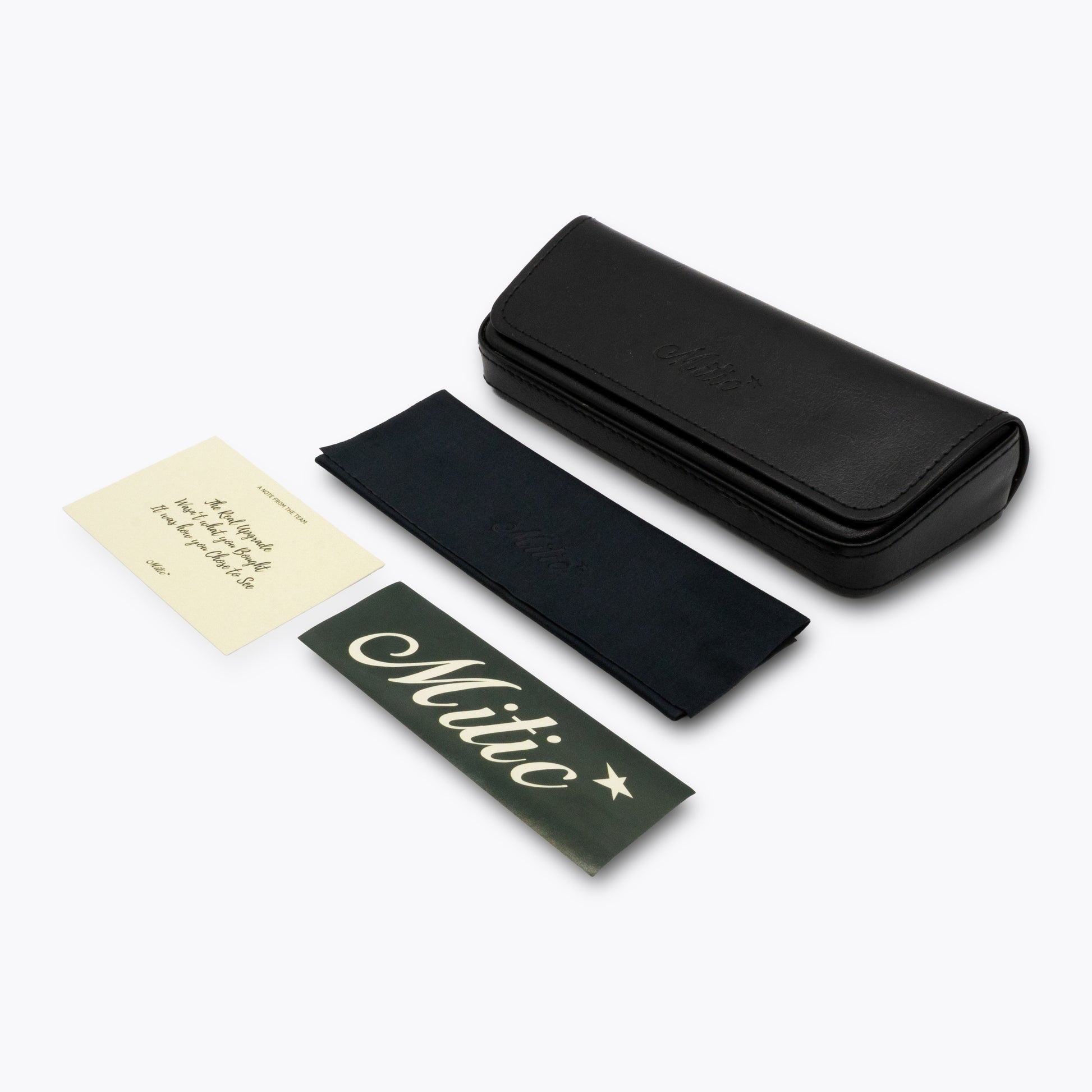 Sus gafas de sol Mitic incluyen una funda protectora y un paño de microfibra especial. Para limpiar las lentes, enjuáguelas únicamente con agua tibia y jabón neutro . Evite el uso de disolventes o alcohol. No utilice telas sucias o abrasivas; utilice el paño de microfibra incluido.