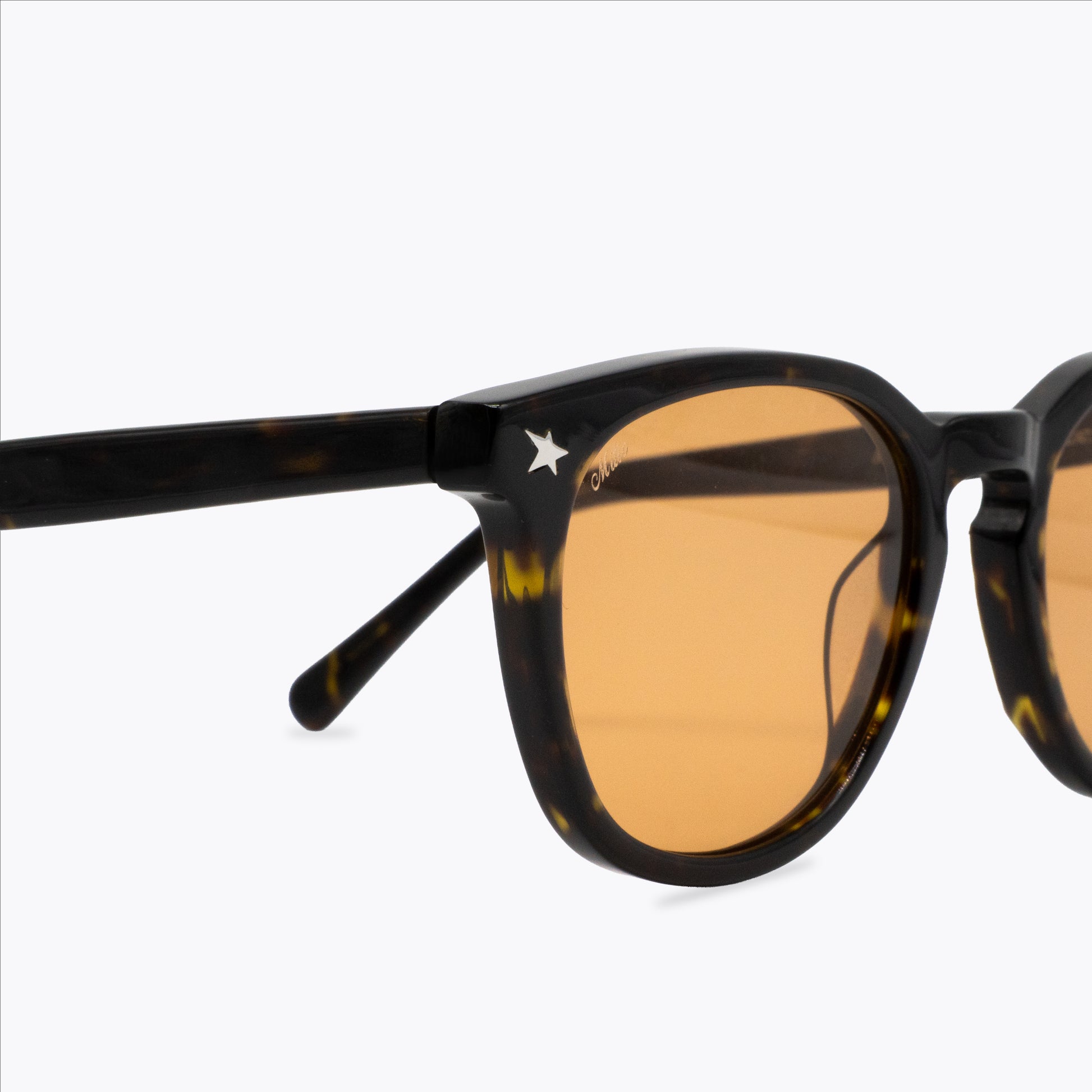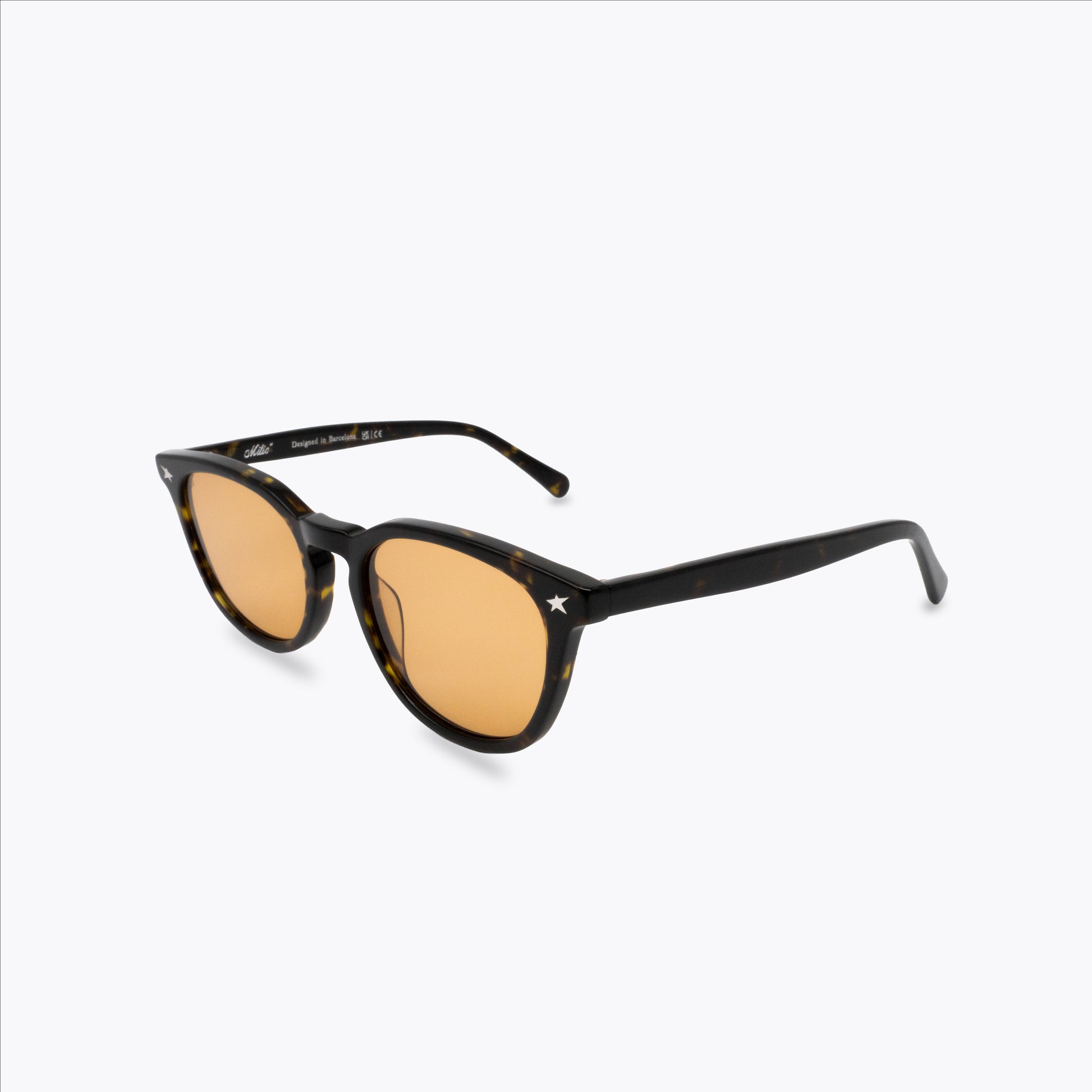 Elaboradas con acetato de primera calidad, las Adhara Havana actualizan la silueta clásica con un sofisticado acabado Havana. La montura en tonos cálidos se combina con lentes ámbar para un contraste refinado que se siente a la vez atemporal y moderno. Acentuadas por los característicos detalles de estrellas en las patillas, son un diseño versátil, duradero, distintivo y con un estilo natural, ideal para el día a día.