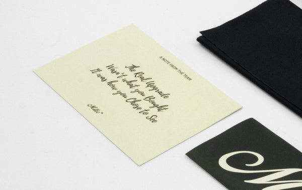 Cada par incluye lo esencial para mantenerlos impecables: un estuche estructurado para protección, un paño de microfibra personalizado para mayor claridad y una tarjeta de autenticidad para certificar su modelo.